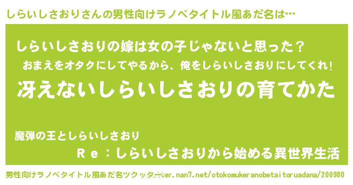 | 女子向けラノベタイトル風あだ名 | 『男装しらいしさおりの憂鬱な任務』 |
