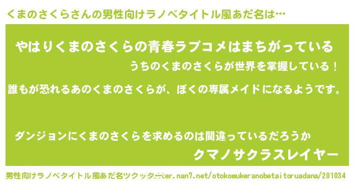 | 女子向けラノベタイトル風あだ名 | 『異世界でカフェくまのさくらを開店しました。』 |