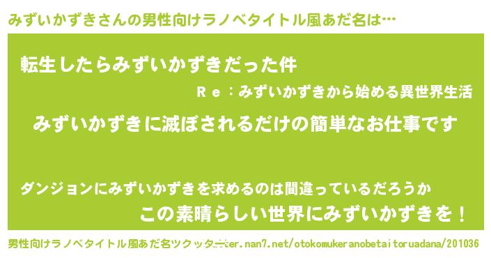 | 欧米人風あだ名 | 『アンジェラ・みずいかずき』 |