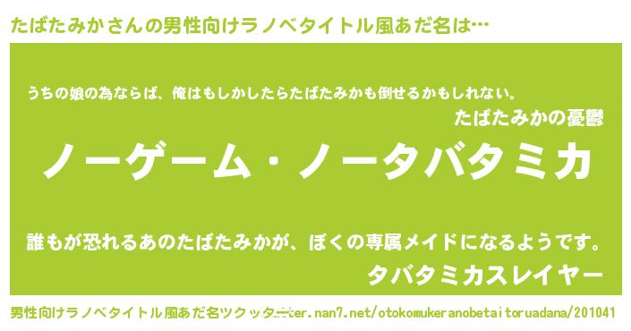 | ヒーロー風カッコイイあだ名 | 『天空の使者たばたみか』 |