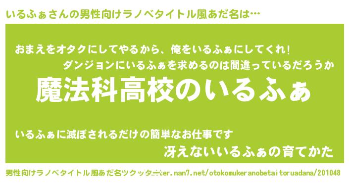 いるふぁさんの男性向けラノベタイトル風あだ名をツクッター!