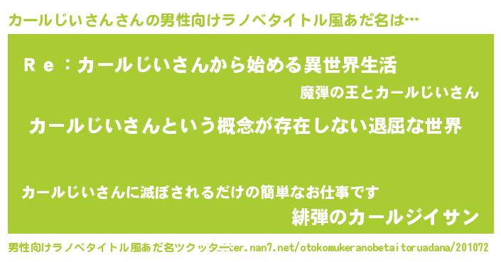 カールじいさんさんの男性向けラノベタイトル風あだ名をツクッター!