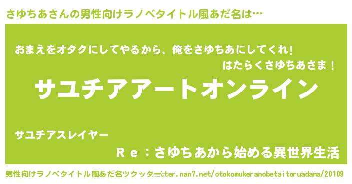 | 女子向けラノベタイトル風あだ名 | 『さゆちあ姫と円卓の騎士』 |