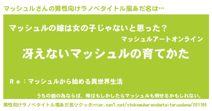 | 女子向けラノベタイトル風あだ名 | 『シンデレラマッシュル家の靴箱館』 |