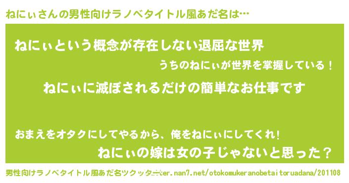 | ヘコむあだ名 | 『ねにぃ(震え声)』『ねにを』 |