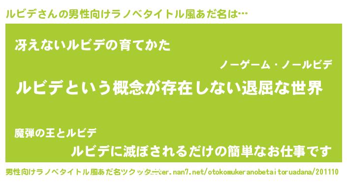 | 女子向けラノベタイトル風あだ名 | 『異世界で失敗しない100のルビデ』 |