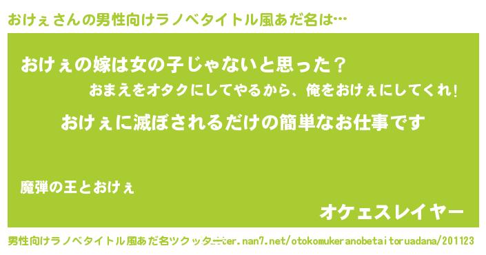おけぇさんの男性向けラノベタイトル風あだ名をツクッター!