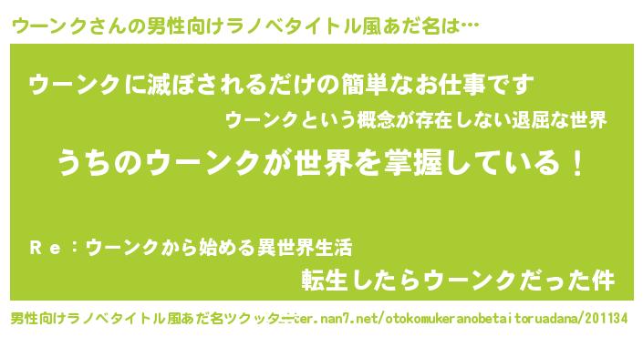 | 市区町村名 | 『ウー田谷区』『名古ウー市』 |
