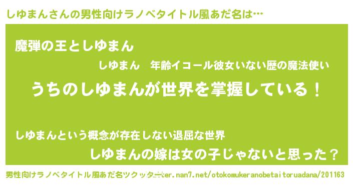 | 意味不明あだ名 | 『住所不定無職しゆまん(53歳)』 |