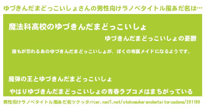 | ファンタジー風あだ名 | 『ユヅディッシュ』『ゼユヅトゥ』 |