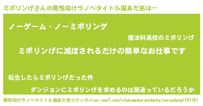 | 伝説のあだ名 | 『救世主となる占い師ミポリンげ』 |