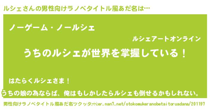 | 女子向けラノベタイトル風あだ名 | 『男装ルシェの憂鬱な任務』 |