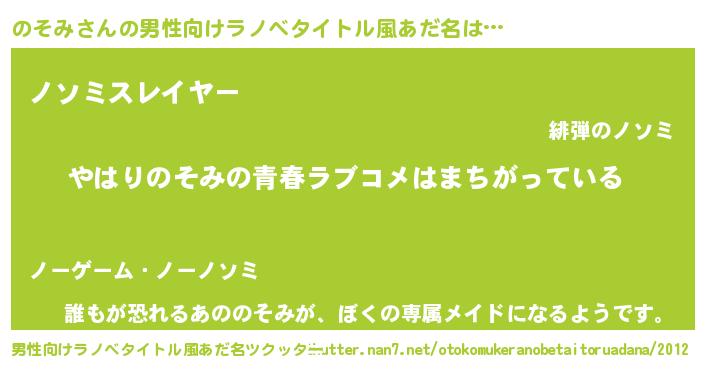 | 女子向けラノベタイトル風あだ名 | 『のそみの雑貨屋さん』 |