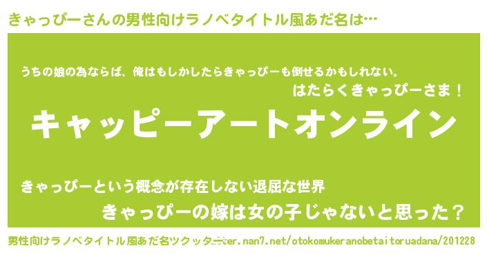 | 女子向けラノベタイトル風あだ名 | 『きゃっぴー姫と円卓の騎士』 |