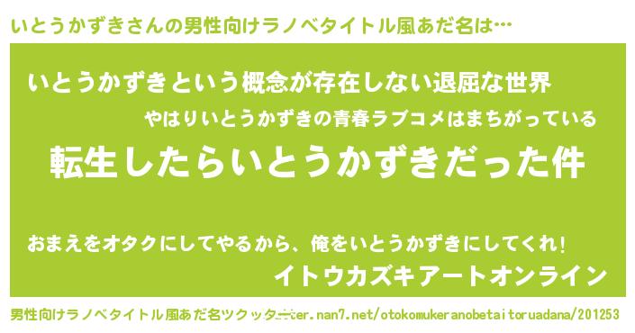| 肩書あだ名 | 『いとうかずき中将』『いとうかずき先生』 |