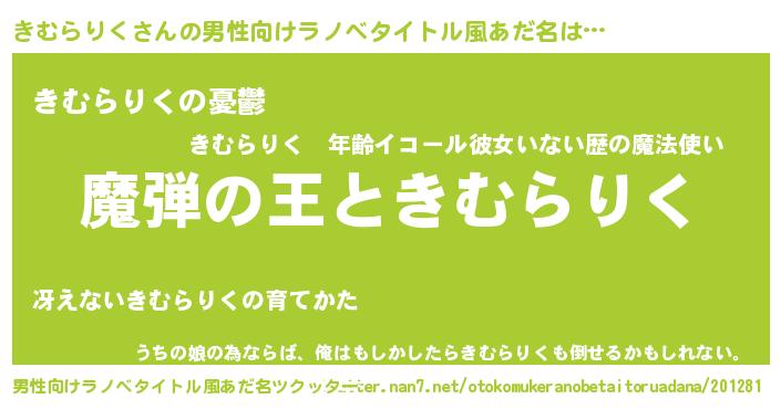 | 意味不明あだ名 | 『住所不定無職きむらりく(11歳)』 |