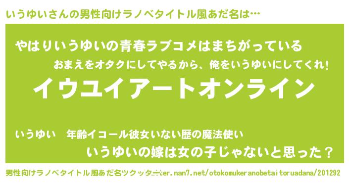 | 胡散臭い通販商品みたいなあだ名 | 『億万長者になれるブレスレット…その名も「いうゆい」』 |