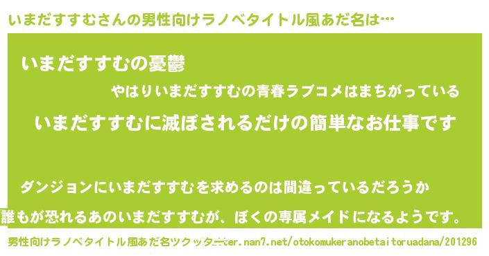 | 胡散臭い通販商品みたいなあだ名 | 『億万長者になれる霊験あらたかなお札…その名も「いまだすすむ」』 |