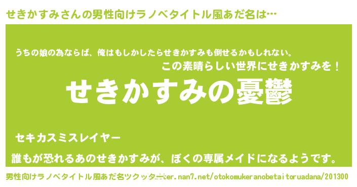 | 女子向けラノベタイトル風あだ名 | 『(仮)せきかすみのやんごとなき事情』 |
