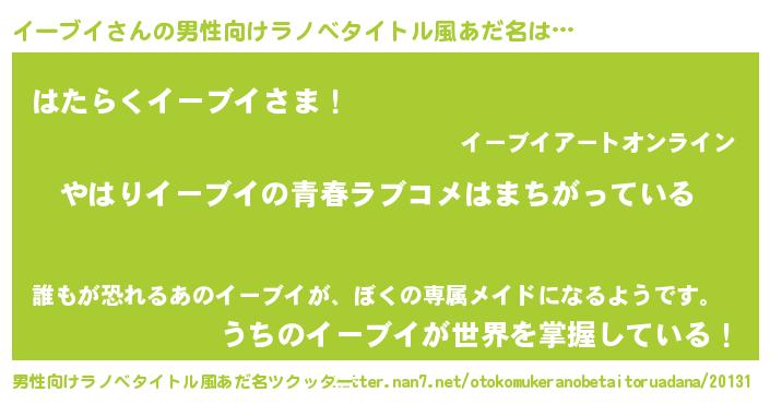 | 女子向けラノベタイトル風あだ名 | 『イーブイの雑貨屋さん』 |