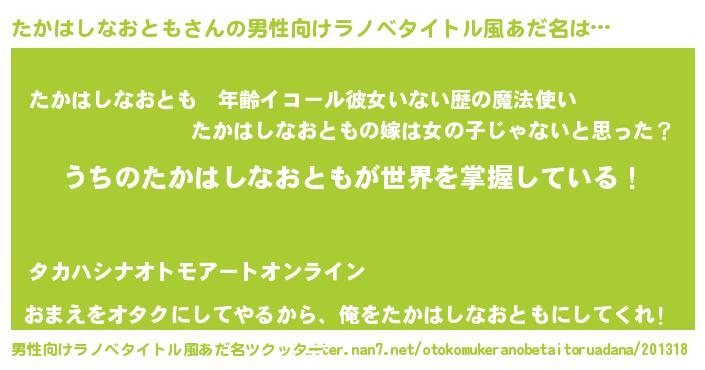 | 女子向けラノベタイトル風あだ名 | 『男装たかはしなおともの憂鬱な任務』 |