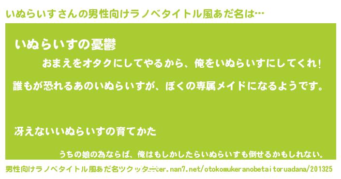 | 胡散臭い通販商品みたいなあだ名 | 『前代未聞の健康食品…その名も「いぬらいす」』 |