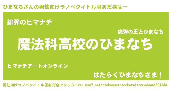 | 女子向けラノベタイトル風あだ名 | 『ひまなちなんてお断りですっ。』 |