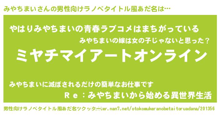 | 胡散臭い通販商品みたいなあだ名 | 『億万長者になれるブレスレット…その名も「みやちまい」』 |