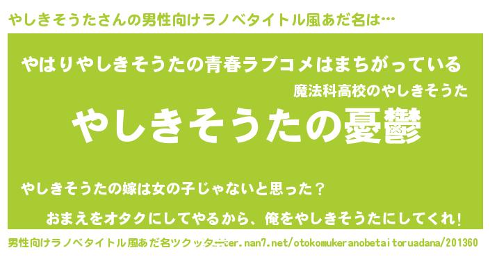 | 胡散臭い通販商品みたいなあだ名 | 『必ず成功する水晶球…その名も「やしきそうた」』 |