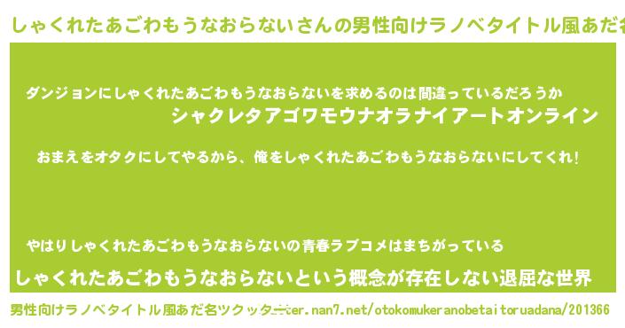 | 女子向けラノベタイトル風あだ名 | 『しゃくれたあごわもうなおらない恋絵巻』 |