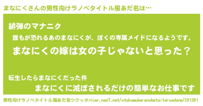 | 女子向けラノベタイトル風あだ名 | 『まなにく様がみてる』 |