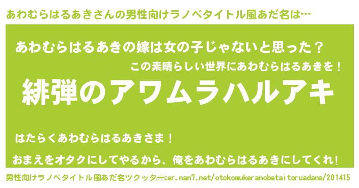 | 女子向けラノベタイトル風あだ名 | 『シンデレラあわむらはるあき家の靴箱館』 |