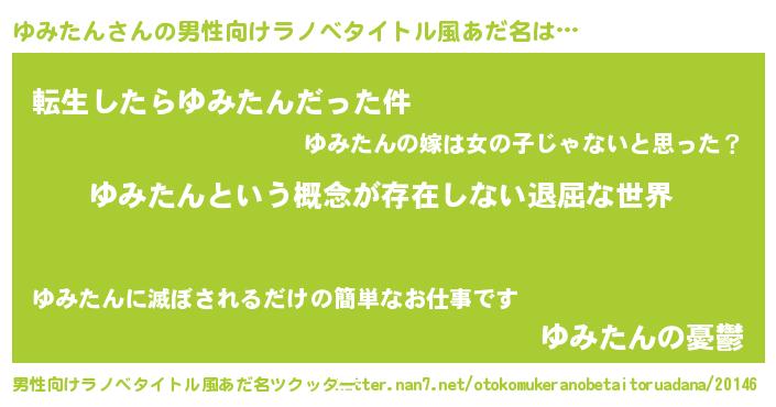 | 女子向けラノベタイトル風あだ名 | 『ゆみたんの契約王妃』 |