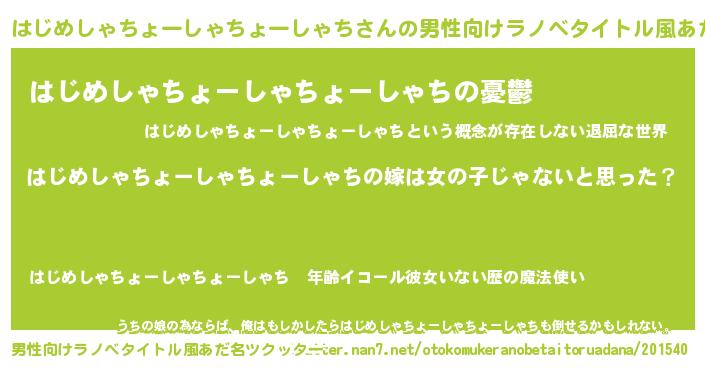 | 女子向けラノベタイトル風あだ名 | 『はじめしゃちょーしゃちょーしゃち様がみてる』 |