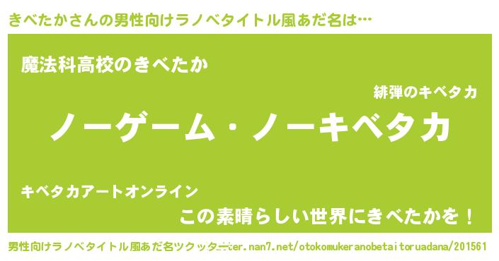 | ヘコむあだ名 | 『きべにゅー』『きべたか(笑)』 |