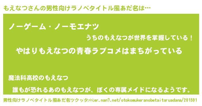 | 女子向けラノベタイトル風あだ名 | 『もえなつの雑貨屋さん』 |