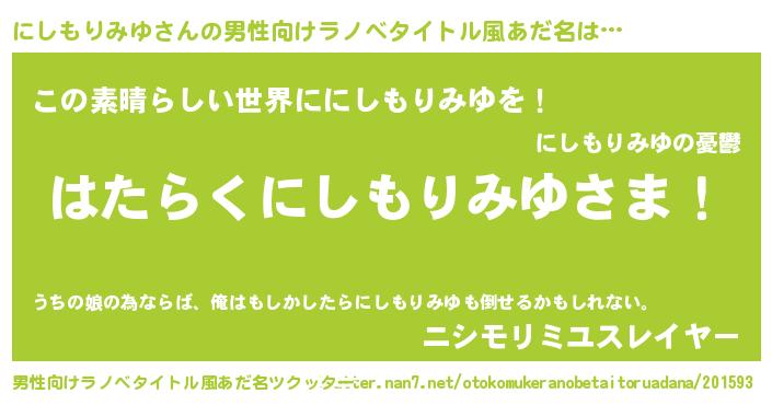| 肩書あだ名 | 『にしもりみゆディレクター』 |