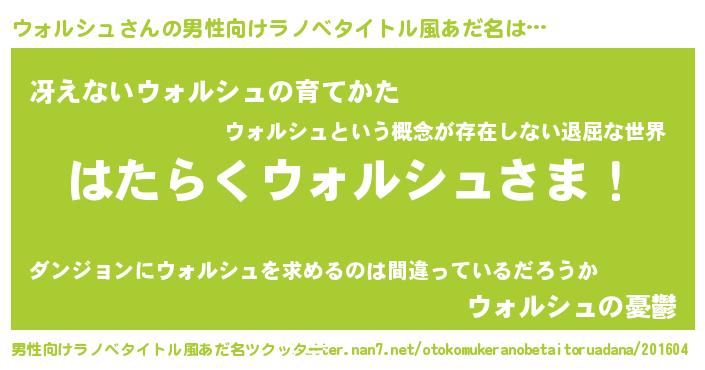 | 胡散臭い通販商品みたいなあだ名 | 『必ず成功する霊験あらたかなお札…その名も「ウォルシュ」』 |