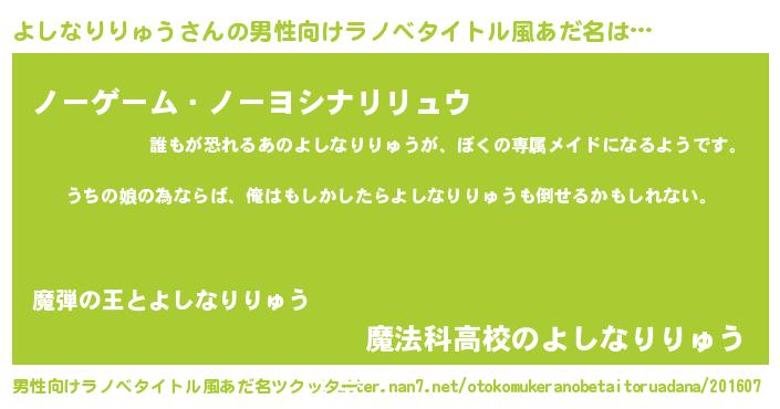| 女子向けラノベタイトル風あだ名 | 『よしなりりゅうの婚約者』 |