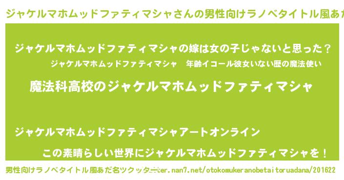 | 女子向けラノベタイトル風あだ名 | 『ジャケルマホムッドファティマシャなんてお断りですっ。』 |
