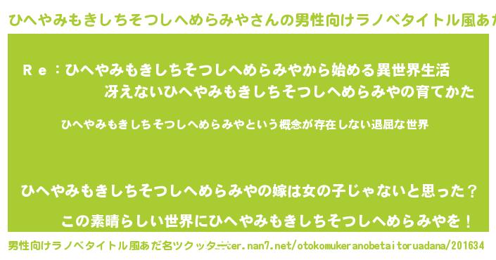 | ヘコむあだ名 | 『ひへやみもきしちそつしへめらみや(小並感)』 |