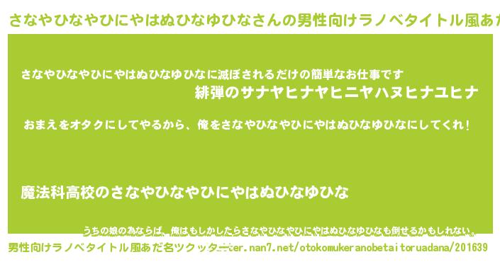 | 欧米人風あだ名 | 『ダニエルさなやひなやひにやはぬひなゆひな』 |