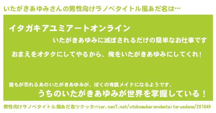 | ヘコむあだ名 | 『いたもー』『いたがきあゆみ(笑)』 |