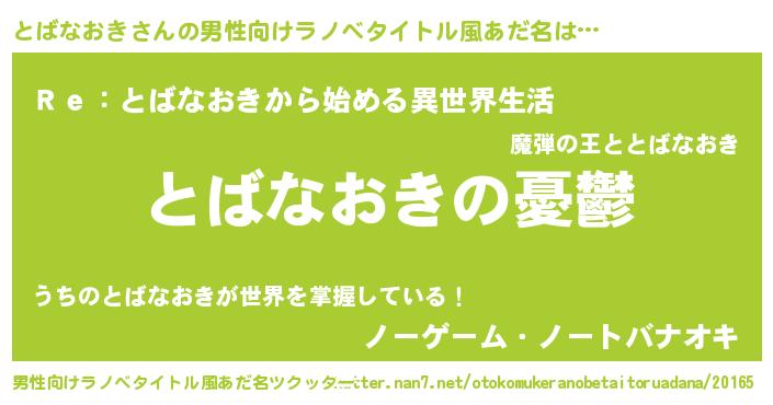 | 女子向けラノベタイトル風あだ名 | 『(仮)とばなおきのやんごとなき事情』 |