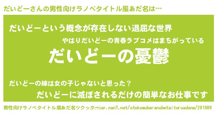| 女子向けラノベタイトル風あだ名 | 『だいどー姫と円卓の騎士』 |