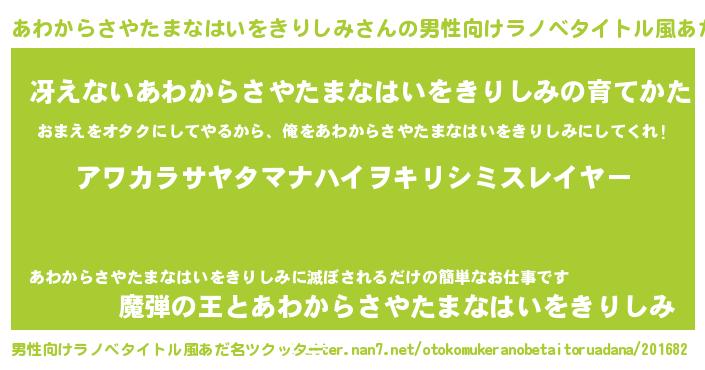 | 胡散臭い通販商品みたいなあだ名 | 『ハリウッド女優が絶賛した世界で10本だけ現存している希少なブランデー…その名も「あわからさやたまなはいをきりしみ」』 |