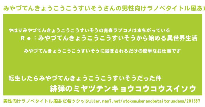 | ファンタジー風あだ名 | 『エターナルミヤヅテンキョウコウコウスイソウー』 |