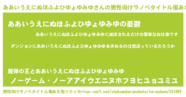 | 女子向けラノベタイトル風あだ名 | 『ああいうえにぬほふよひゆょゆみゆは平凡を望む』 |