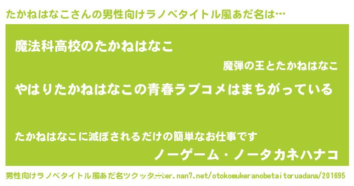 | 女子向けラノベタイトル風あだ名 | 『たかねはなこ伯爵の花嫁』 |