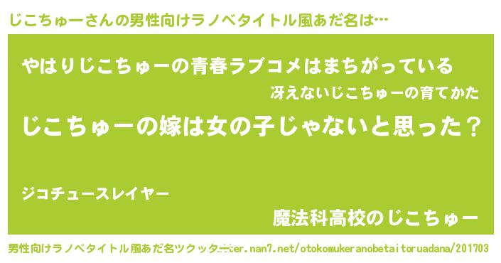 | 胡散臭い通販商品みたいなあだ名 | 『全米が絶賛したサプリメント…その名も「じこちゅー」』 |